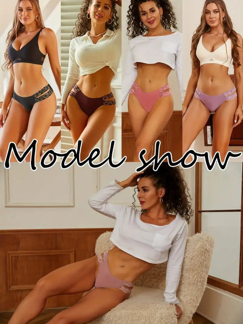 5pcs Contrast Lace Briefs, Hollow Out Seamless Stretchy Intimates Panties, Women's Lingerie Underwear Recycled Fabric.